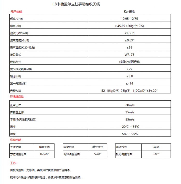 產品名稱:1.8米偏饋KU天線 KU頻段1.8米衛星(xīng)天線